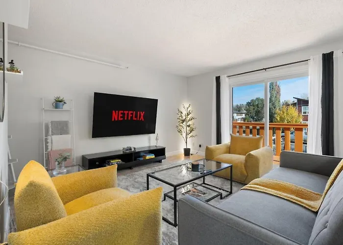 An equipped kitchen, along with a dining area, are available for dining. You can also make use of tea and coffee making facilities, a fridge, and kitchenware to prepare your own meal. The restaurant NOtaBLE is located a mere 250 metres away and serves Canadian dishes. The nearest airport is Calgary International, situated 25 km from the holiday home, and Downtown- West Kerby C train station is nearly 10 minutes away by car.